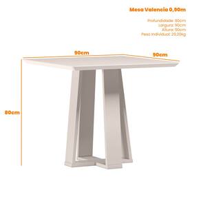 Mesa de Jantar Quadrada 4 Lugares 90cm Tampo Mdf com Vidro Valencia Off White/Preto - New Ceval