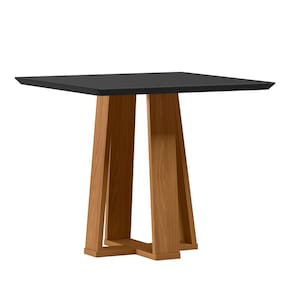 Mesa de Jantar Quadrada 4 Lugares 90cm Tampo Mdf com Vidro Valencia Ypê/Preto - New Ceval