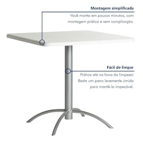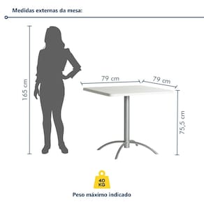 A mesa de jantar é segura? Claro, ela é produzida com os melhores materiais. Acabamento: Pintura Acabamento da Base: Pintura Acabamento do Tampo: Pintura Ambiente Principal: Sala de Jantar codigo_ean: 7900288185068 Complexidade da Montagem: Baixa: pode ser montado por uma pessoa sozinha Cor: Cromado/Branco Cor do Produto: Cromado/Branco Design da Base: Cruz Dobrável: Não Escala de Brilho: Semi-Brilho Espessura do Tampo: 18 mm Extensível: Não Itens Inclusos: 1 Mesa, Kit Ferragens e Manual de Montagem Linha ou Coleção: Casual Manual de Montagem e Instalação: https://product-hub-prd.madeiramadeira.com.br/796842989/documents/f8331c37-63c3-436d-b63e-59fa7542746d303549973217513753694467.pdf Marca: Prima Design Material da Base: Aço Material do Tampo: MDF Material Principal: Aço Medida da Base (A x L x P): 72,5x79x79 Medida da Mesa (A x L x P): 75,5x79x79 Medida do Tampo (L x C x E): 79x79x18 Necessita Montagem: Sim Origem do Produto: Nacional Peso: 11,5 kg Possui Portas: Não Possui Rodízio: Não Possui Vidro: Não Recomendações de Uso, Manutenção e Limpeza: A estrutura deve ser limpa utilizando pano seco de algodão ou flanela. Se necessário, utilize panoumedecido apenas com água, secando o móvel em seguida. Não utilize solvente, álcool, acetona, lustra móveis, produtos abrasivos e outros produtos que contenham soda e ou ácidos para limpar e tirar manchas dos móveis. Não expor os móveis à luz solar e ambientes com umidade relativa elevada. Manter a estrutura metálica limpa, utilizando pano seco ou cera a base de silicone. Sistema de Montagem: Parafusos Suporta Até (kg): 40 kg Marca: Não Informado
