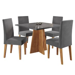 A mesa de jantar quadrada Columbia com tampo em MDP e dimensões de 90x90 cm, é uma solução perfeita para ambientes pequenos e modernos. Seu design clean combina funcionalidade e estilo, oferecendo um espaço aconchegante para refeições em família. As quatro cadeiras, com assentos confortáveis e um toque contemporâneo, complementam a mesa, tornando-a ideal para jantares casuais ou ocasiões especiais. A resistência do MDP garante durabilidade, enquanto a superfície lisa facilita a limpeza, ideal para o dia a dia. Esse conjunto cria um ambiente acolhedor, onde cada refeição se transforma em um momento especial. A mesa é versátil, podendo ser decorada com toalhas, centros de mesa ou simplesmente mantida em sua forma único. Medida da Mesa (A x L x P): A:78 x L:90 x P:90cm Peso da Mesa: 23 kg Mesa suporta até: 50.0000 Acabamento da Cadeira/Banco: Pintura UV Acabamento da Mesa: Pintura UV Acompanha Manual de Instalação: Sim Ambiente Principal: Sala de Jantar Cadeira/Banco Estofada: Encosto e Assento Estofados Cadeira/Banco estofada: Encosto e Assento Estofados Cadeira/Banco suporta até: 90.0000 codigo_ean: 7909903971109 Complexidade da Montagem: Média: pode ser montado por mais de uma pessoa e/ou necessite de maior conhecimento para montagem Cor: Mel/Cinza/Grafite Cor do Produto: Mel/Cinza/Grafite De Canto (Canto Alemão): Não Design da Base: Em X Enchimento do Assento: Espuma D-20 Enchimento do Encosto: Espuma D-12 Escala de Brilho: Semi-Brilho Espessura do Tampo: 25 mm Estrutura do Assento: MDP/Espuma Formato do Tampo: Quadrado Informações Complementares: Sala de Jantar 4 lugares Itens Inclusos: 1 mesa, 4 cadeiras, kit ferragem, manual de montagem Linha ou Coleção: Viero Manual de Montagem e Instalação: https://product-hub-prd.madeiramadeira.com.br/959329/documents/9082f6b6-1446-4aca-9160-eb64a4197b3824579345281728998535197.pdf Marca: Viero Material da Base da Mesa: MDP Material da Estrutura da Cadeira: MDF/MDP Material do Tampo: MDP Material Principal: MDF/MDP Material Principal das Cadeiras/Bancos: MDF/MDP Medida da Cadeira/Banco (A x L x P): A:98,5 x 41 x P:58,5cm Medida do Tampo (L x C x E): L:90 x C:90 x E:2,5cm Mesa Extensível: Não Necessita Montagem: Sim Origem do Produto: Nacional Peso da Cadeira/Banco: 7,1 kg Possui Apoio Para os Pés: Não Possui Vidro: Não Quantidade de Cadeiras: 4 Quantidade de Lugares: 04 Recomendações de Uso, Manutenção e Limpeza: limpar com pano levemente umedecido em água Revestimento da Cadeira/Banco: Veludo Sistema de Montagem: Parafusos Tipo de Encosto: Estofado