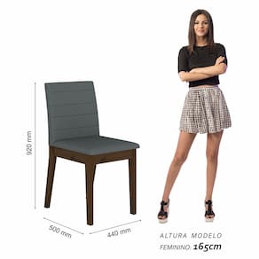 Detalhes Técnicos das Cadeiras -Assento e Encosto Tapeçados, Estofados e Fixos -Cadeira suporta até 90KG -Facilidade Montagem:Média -Tonalidade Cadeira:Imbuia/Suede Cinza -Espuma Assento:D23 -Espuma Encosto:D16 -Pintura UV Texturizada -Material Estrutura:MDF 25/18mm -Medida Cadeira:A92CMxL44CMxP50CM