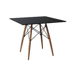 Mesa De Jantar Quadrada Eames Eiffel 90cm Preta Base Madeira - Cor: Preto