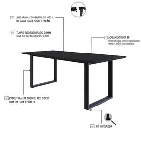 Mesa De Jantar Queens Rg2 200x90x77cm Qemj9200rg2 Preto Tx - Preto Tx/