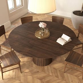 Mesa de Jantar Redonda 160cm Scandi 8 lugares Lamina Natural de Madeira Castanho -