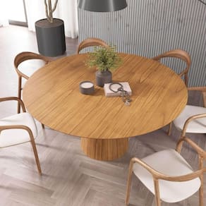Mesa de Jantar Redonda 160cm Scandi 8 lugares Lamina Natural de Madeira -