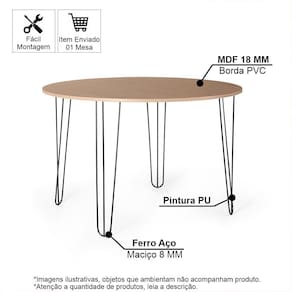 Acabamento Premium e Fácil de Limpar: O tampo redondo de MDF 15 mm possui acabamento em melamina fosca e borda em PVC. Isso garante uma superfície altamente resistente a riscos leves e extremamente fácil de limpar, unindo praticidade e beleza no dia a dia.