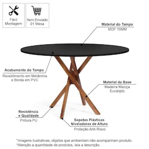 Mesa de Jantar Redonda 4 Lugares 90cm em Madeira June - Straub Web - Preto
