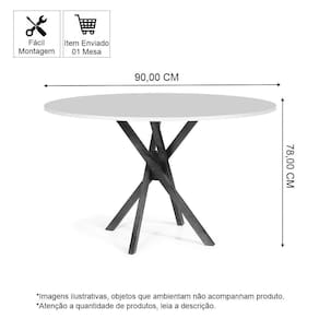 Design Redondo Acolhedor: O tampo de 90 cm em MDF de 15 mm, com acabamento melamínico fosco, otimiza o espaço e facilita a circulação, além de estimular a interação entre as pessoas.