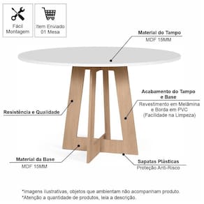 Produtos Entregues: 01 Mesa de Jantar (Demais produtos são meramente ilustrativos, não fazendo parte da entrega);