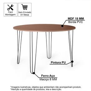 Mesa de Jantar Redonda 6 Lugares 120cm Base de Ferro Hairpin