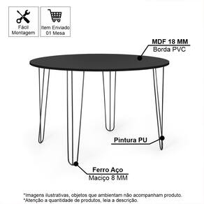 Mesa de Jantar Redonda 6 Lugares 120cm Base de Ferro Hairpin - Straub Web - Preto