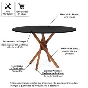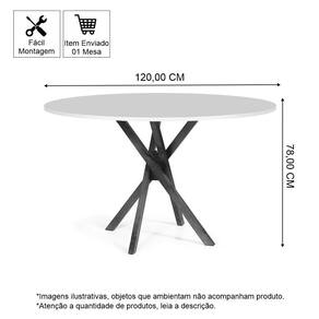 Destaques do Produto: Design Redondo Acolhedor: O tampo de 120 cm em MDF de 15 mm, com acabamento melamínico fosco, otimiza o espaço e facilita a circulação, além de estimular a interação entre as pessoas.