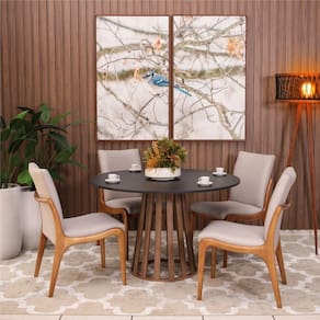 MDFMesa de Jantar Redonda 6 Lugares 120cm em MDF Gabi Preto e Noronha -
