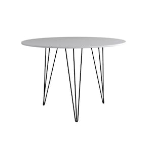 Mesa De Jantar Redonda 90Cm Branca Clips 3 Pés Ferro Preto Cor: Branco