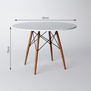 Mesa De Jantar Redonda Eiffel Eames 90cm De Madeira BrancoA Mesa Eiffel é a escolha ideal para deixar sua casa muito mais bonita e renovada. Essa mesa tem em sua estrutura materiais de altíssima qualidade, que proporciona muito mais resistência, mesmo com o passar dos anos. Ela tem formato redondo e possui espaço para 4 lugares, o que é ideal para um jantar em família. A mesa é versátil e combina com vários tipos de decoração, o que dá mais praticidade em casa.Tipo: MesaModelo: EiffelCor: BrancoDimensões do Produto- Altura: 76cm- Diâmetro: 90cmCaracterísticas- Base: Madeira- Tampo de Madeira (mdp)- Necessita Montagem? Parcialmente (Produto Entregue Montado Parcialmente)Mesa de Jantar Redonda Eiffel Eames 90cm de Madeira Branco - Up Home