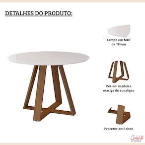 ESPECIFICAÇÕES TÉCNICA • Altura: 79 cm • Diâmetro: 110 cm • Base: Madeira maciça (eucalipto) • Tampo: MDF 18mm