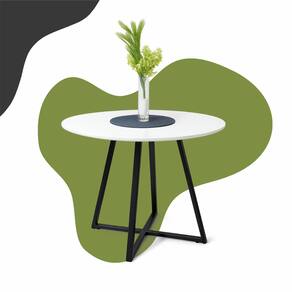 CARACTERÍSTICAS DO PRODUTO Tipo: Mesa de Jantar Modelo: Lais Formato: Redondo Cor do Tampo: Branco Material do Tampo: MDF 18mm Estrutura/Pés: Ferro com pintura preta Design: Moderno e versátil