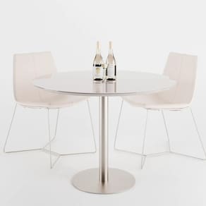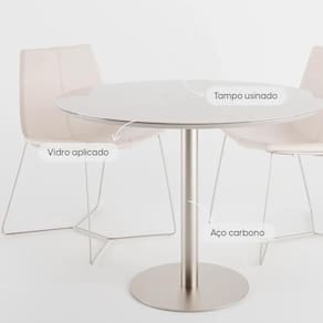 Vidro de 3 mm aplicado sobre o tampo com acabamento em pintura UV.