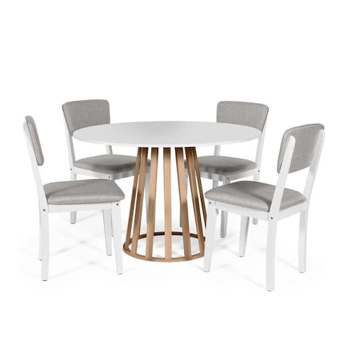 Mesa de Jantar Redonda Gabi com 4 Cadeiras Estofadas Madeira Maciça Ella