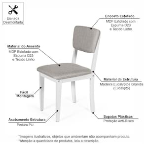 Itens Inclusos: 01 Mesa + 04 Cadeiras (os demais produtos que ambientam a imagem não fazem parte do produto vendido e entregue).