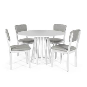 Mesa de Jantar Redonda Gabi com 4 Cadeiras Estofadas Madeira Maciça Ella