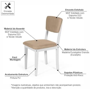 Itens Inclusos: 01 Mesa + 04 Cadeiras (os demais produtos que ambientam a imagem não fazem parte do produto vendido e entregue).