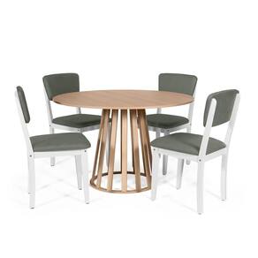 Mesa de Jantar Redonda Gabi com 4 Cadeiras Estofadas Madeira Maciça Ella