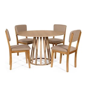 Mesa de Jantar Redonda Gabi com 4 Cadeiras Estofadas Madeira Maciça Ella