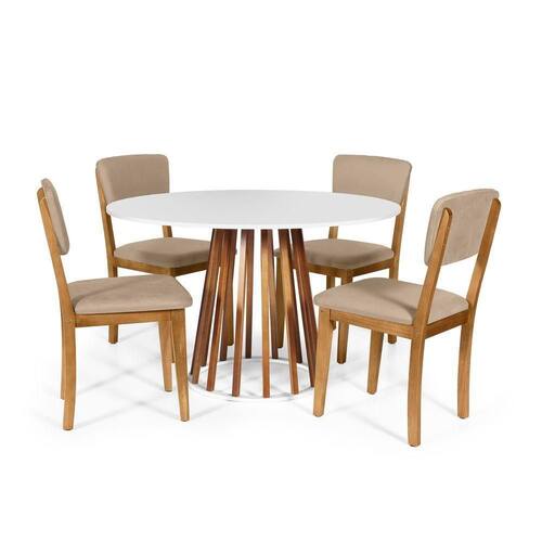 Mesa De Jantar Redonda Gabi Nat/bran Com 4 Cadeiras Estofadas Ella Bege