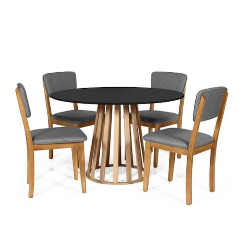 Mesa de Jantar Redonda Gabi com 4 Cadeiras Estofadas Madeira Maciça Ella