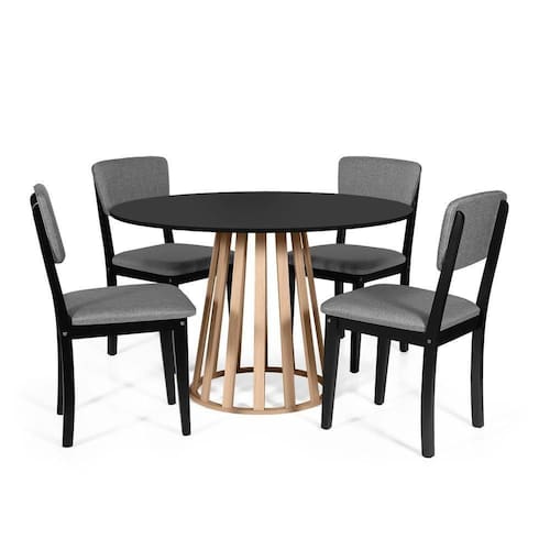 Mesa de Jantar Redonda Gabi com 4 Cadeiras Estofadas Madeira Maciça Ella