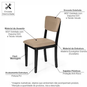 Itens Inclusos: 01 Mesa + 04 Cadeiras (os demais produtos que ambientam a imagem não fazem parte do produto vendido e entregue).