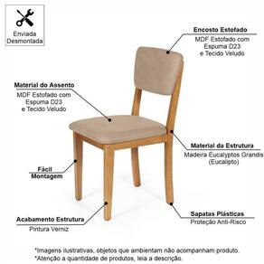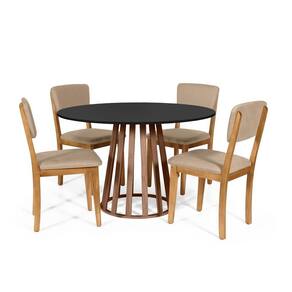 Mesa de Jantar Redonda Gabi com 4 Cadeiras Estofadas Madeira Maciça Ella