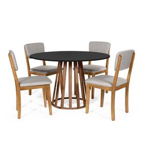 Mesa de Jantar Redonda Gabi com 4 Cadeiras Estofadas Madeira Maciça Ella