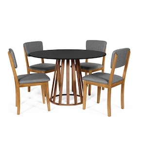 Mesa de Jantar Redonda Gabi com 4 Cadeiras Estofadas Madeira Maciça Ella