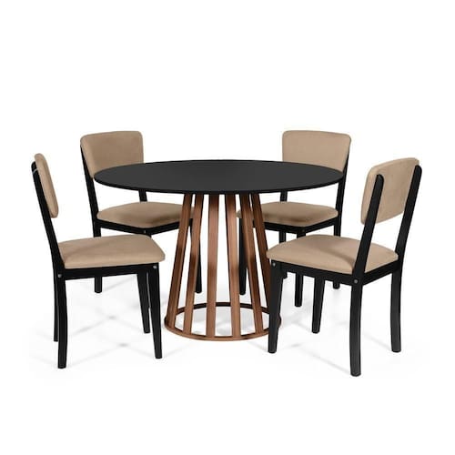 Mesa De Jantar Redonda Gabi Pret/nor Com 4 Cadeiras Estofadas Ella Preto/marrom Claro