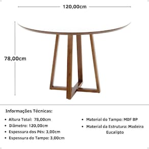 Mesa de Jantar Redonda Lara Premium 120cm em Madeira Maciça e MDF