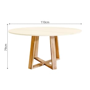 Mesa De Jantar Redonda Livia 110cm Off White Pés Em Madeira