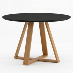 Mesa De Jantar Redonda Livia 110cm Preta Pés Em Madeira - Preto