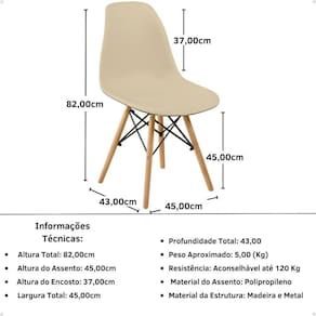 > Material da Cadeira: Assento: Polipropileno | Estrutura: Madeira e Metal