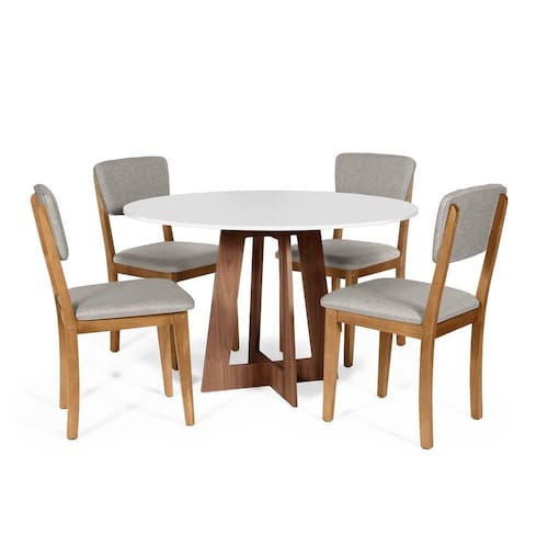 Mesa de Jantar Redonda Montreal com 4 Cadeiras Estofadas Madeira Maciça Ella
