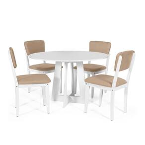 Mesa De Jantar Redonda Montreal Branca Com 4 Cadeiras Estofadas Ella Branco/bege