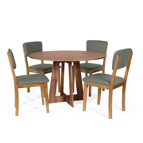 Mesa de Jantar Redonda Montreal com 4 Cadeiras Estofadas Madeira Maciça Ella