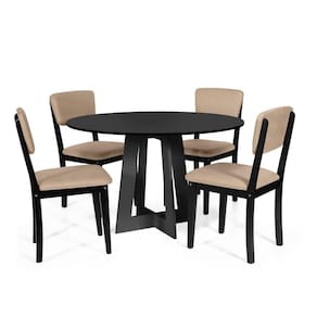 Mesa De Jantar Redonda Montreal Preta Com 4 Cadeiras Estofadas Ella Preto/bege