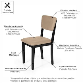 Itens Inclusos: 01 Mesa + 04 Cadeiras (os demais produtos que ambientam a imagem não fazem parte do produto vendido e entregue).