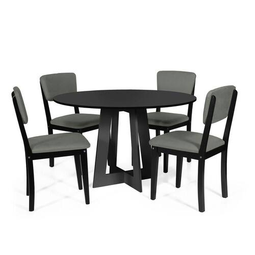 Mesa de Jantar Redonda Montreal com 4 Cadeiras Estofadas Madeira Maciça Ella