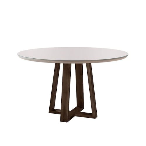 Mesa de Jantar Redonda Natalle Madeira Macica e Tampo Com Vidro Moveis Mix