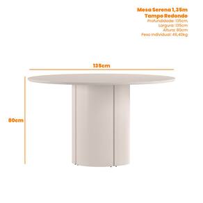 Mesa de Jantar Redonda para 6 Lugares 135cm Tampo Mdf com Vidro Serena Off White/Preto - New Ceval