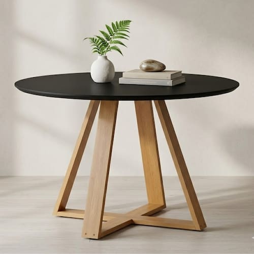 ESPECIFICAÇÕES TÉCNICA • Altura: 79 cm • Diâmetro: 110 cm • Base: Madeira maciça (eucalipto) • Tampo: MDF 18mm