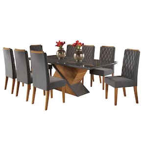 Para reunir a família naquele jantar especial, o Conjunto Noble e Iza é a pedida certa! Enquanto a mesa tem base com design inovador, tampo chanfrado e canto arredondado e com aplicação de vidro, trazendo estilo à decoração, as 8 cadeiras têm estofamento em espuma e revestimento em tecido de toque macio, proporcionando mais conforto aos seus momentos de alegria Medida da Mesa (A x L x P): A:82 x L:200 x P:90cm Peso da Mesa: 77,5 kg Mesa suporta até: 50 kg Acabamento da Cadeira/Banco: Pintura UV Acabamento da Mesa: Pintura UV Acompanha Manual de Instalação: Sim Ambiente Principal: Sala de Jantar Cadeira/Banco estofada: Encosto e Assento Estofados Cadeira/Banco suporta até: 90 kg Complexidade da Montagem: Média: pode ser montado por mais de uma pessoa e/ou necessite de maior conhecimento para montagem Cor: Mel/Grafite Cor do Produto: Mel/Grafite Cor do Tampo: Grafite Cor Secundária: Cinza De Canto (Canto Alemão): Não Enchimento do Assento: Espuma D-20 Enchimento do Encosto: Espuma D-12 Escala de Brilho: Semi-Brilho Espessura do Tampo: 40 mm Espessura do Vidro: mm Estrutura do Assento: MDP Estrutura do Encosto: MDP Formato do Tampo: Retangular Informações Complementares: Sala de Jantar 8 lugares Itens Inclusos: 1 mesa, 8 cadeiras, kit ferragem, manual de montagem Manual de Montagem e Instalação: https://product-hub-prd.madeiramadeira.com.br/932656/documents/f2d51091-9356-4008-92a0-9415f14d7524227173852817248669930922.pdf Material da Base da Mesa: MDP Material da Estrutura da Cadeira: MDF/MDP Material do Tampo: Vidro/MDF Material Principal: MDF/MDP Material Principal das Cadeiras/Bancos: MDF/MDP Medida da Cadeira/Banco (A x L x P): A:101 x L:42 x P:58,5cm Medida do Tampo (L x C x E): L:200 x C:90 x E:4cm Mesa Extensível: Não Necessita Montagem: Sim Origem do Produto: Nacional Peso da Cadeira/Banco: 8,05 kg Possui Apoio Para os Pés: Não Possui Vidro: Sim Quantidade de Cadeiras: 8 Quantidade de Lugares: 08 Recomendações de Uso, Manutenção e Limpeza: Limpar com pano levemente umedecido com água Revestimento da Cadeira/Banco: Veludo Sistema de Montagem: Parafusos, cavilhas